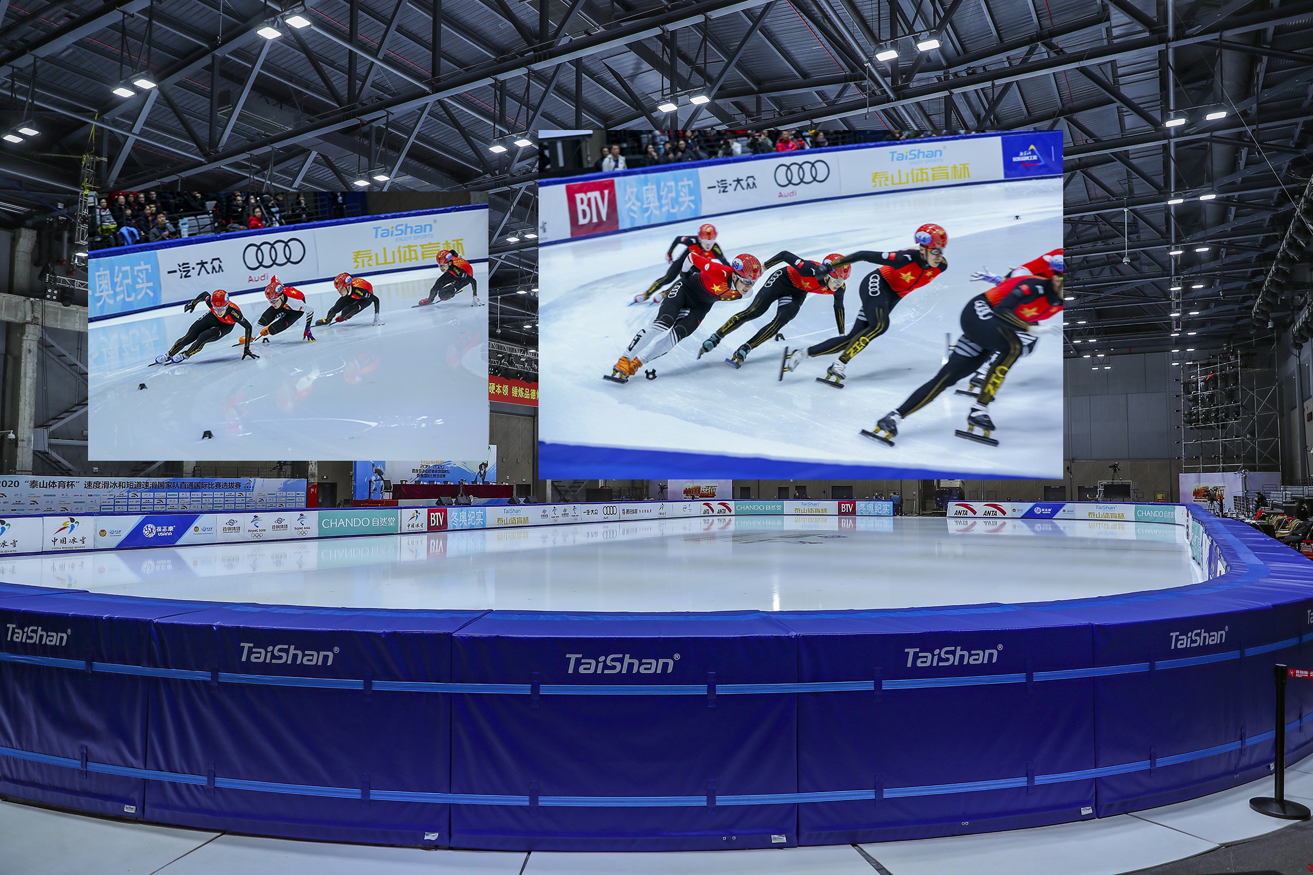 2019年泰山出色的服务了意大利大学生运动会、第七届武汉世界军人运动会等国际性赛事。10月5日“金年汇杯”速度滑冰和短道速滑国家队直通国际比赛选拔赛开幕,泰山自主研发的冰雪运动防撞界墙系列产品,首次亮相国际比赛,开创了冰雪世界的新未来!