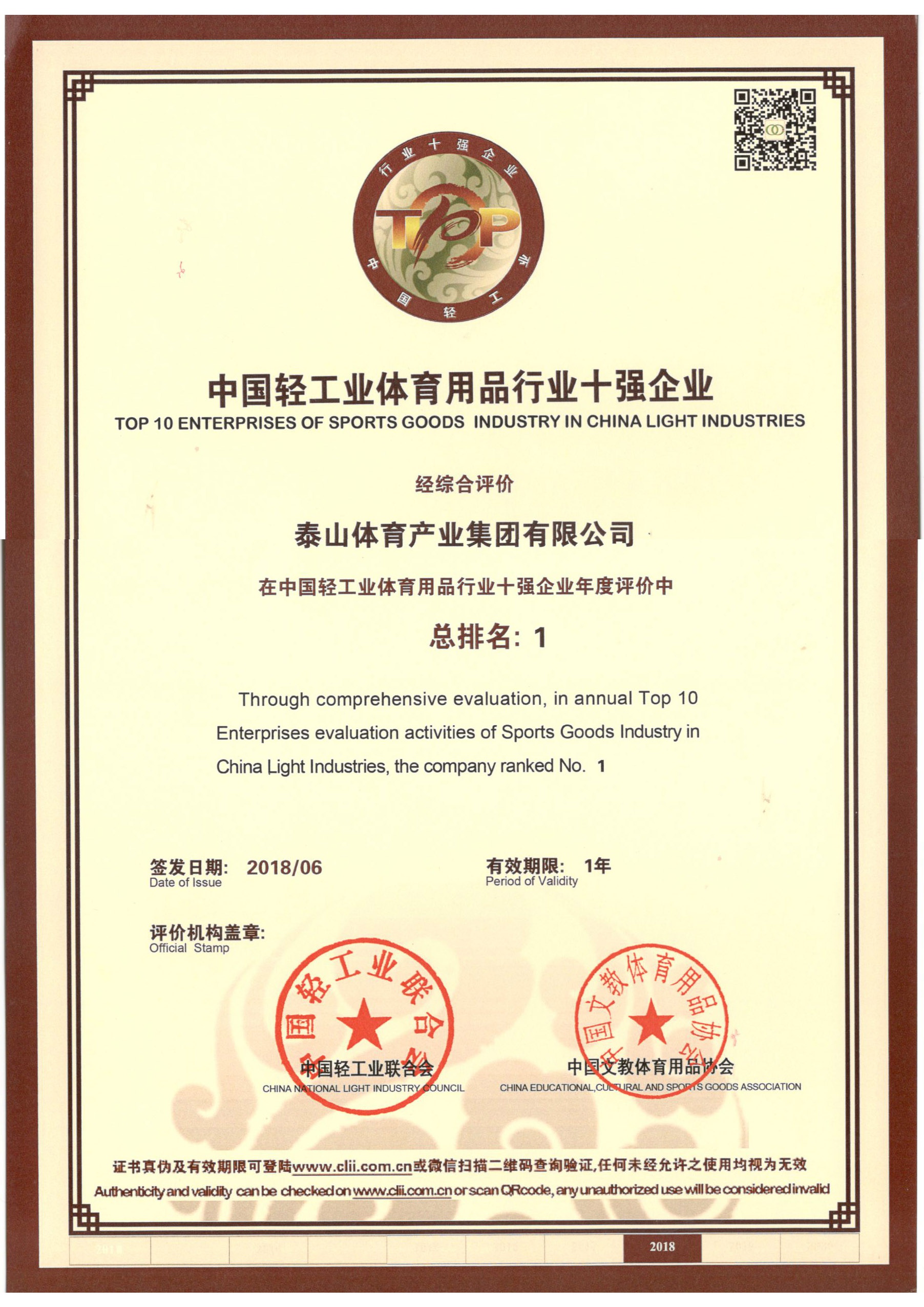 泰山集团践行诚信经营发展理念,坚持做好人品,做好产品,以工匠精神打造中国体育产业的民族品牌。
