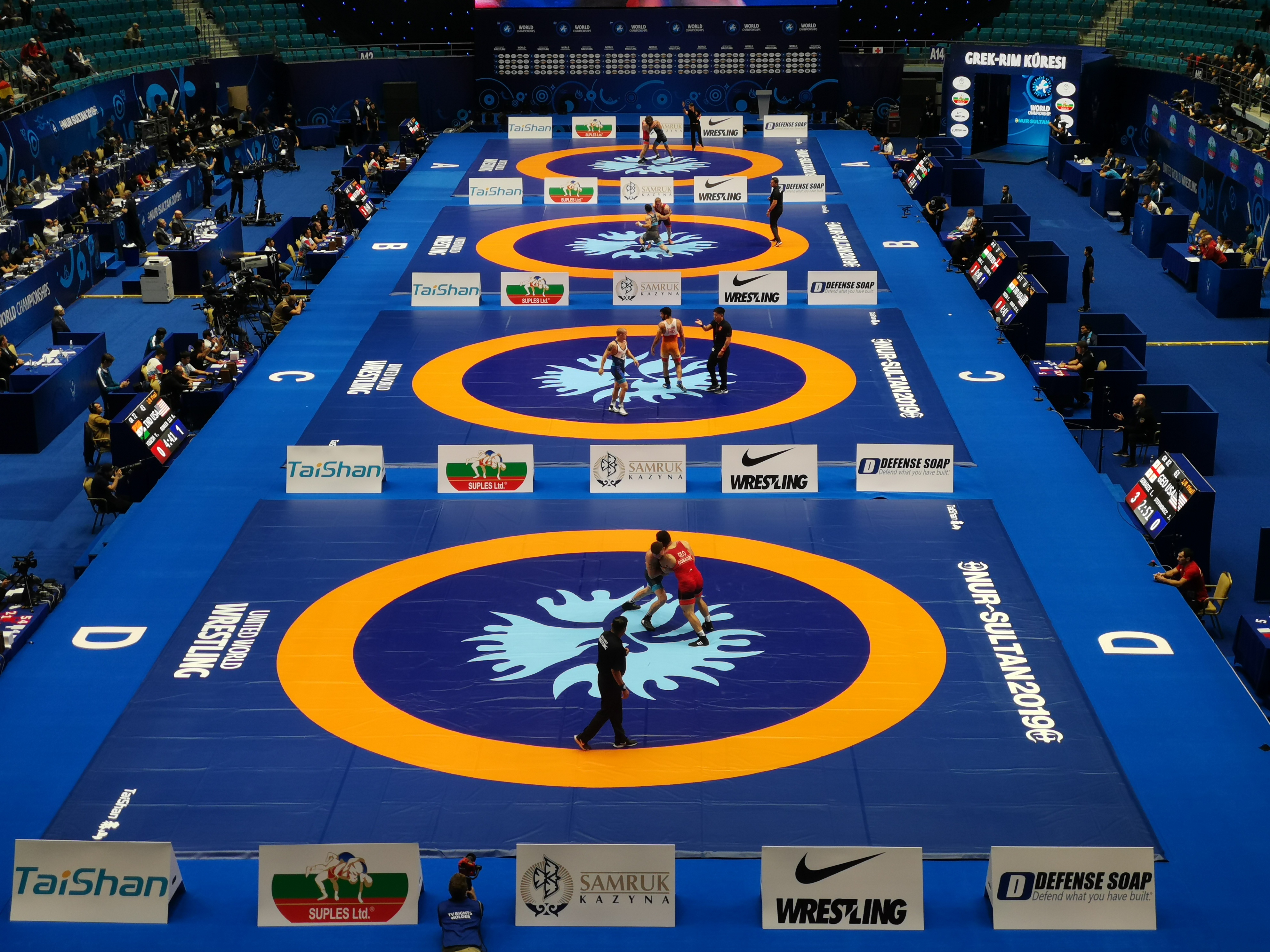 本届世锦赛开赛前,世界各国运动员来到比赛场地中进行赛前热身,各国媒体也将焦点对准夺冠热门选手与他们使用的泰山摔跤器材。对于器材的品质,运动员都纷纷点赞。“历届世界赛事都在使用泰山摔跤器材,这让我们有了充分的硬件保障,很感谢他们为摔跤运动发展所提供的支持!”一位俄罗斯运动员在训练场上表示。