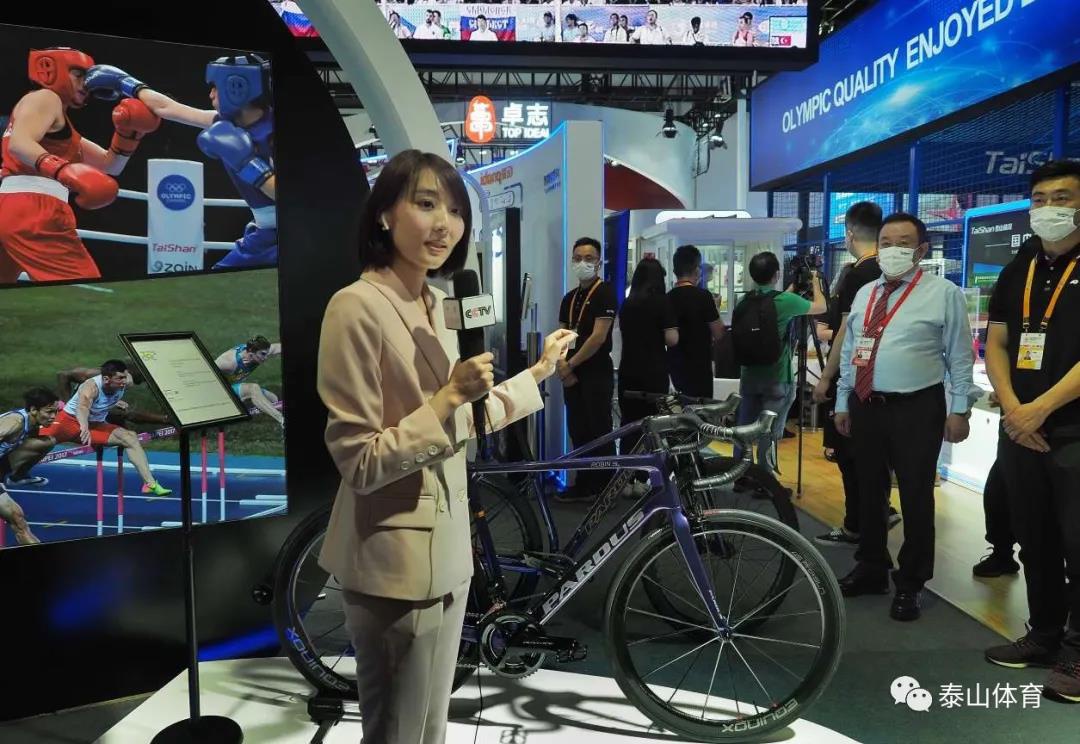 央视新闻频道消博会专题现场直播来到金年汇展厅,央视新闻记者宋菀在泰山瑞豹运动自行车展位单手感受泰山瑞豹碳纤维自行车的轻量化高刚性的“黑科技”高性能,圈粉无数。