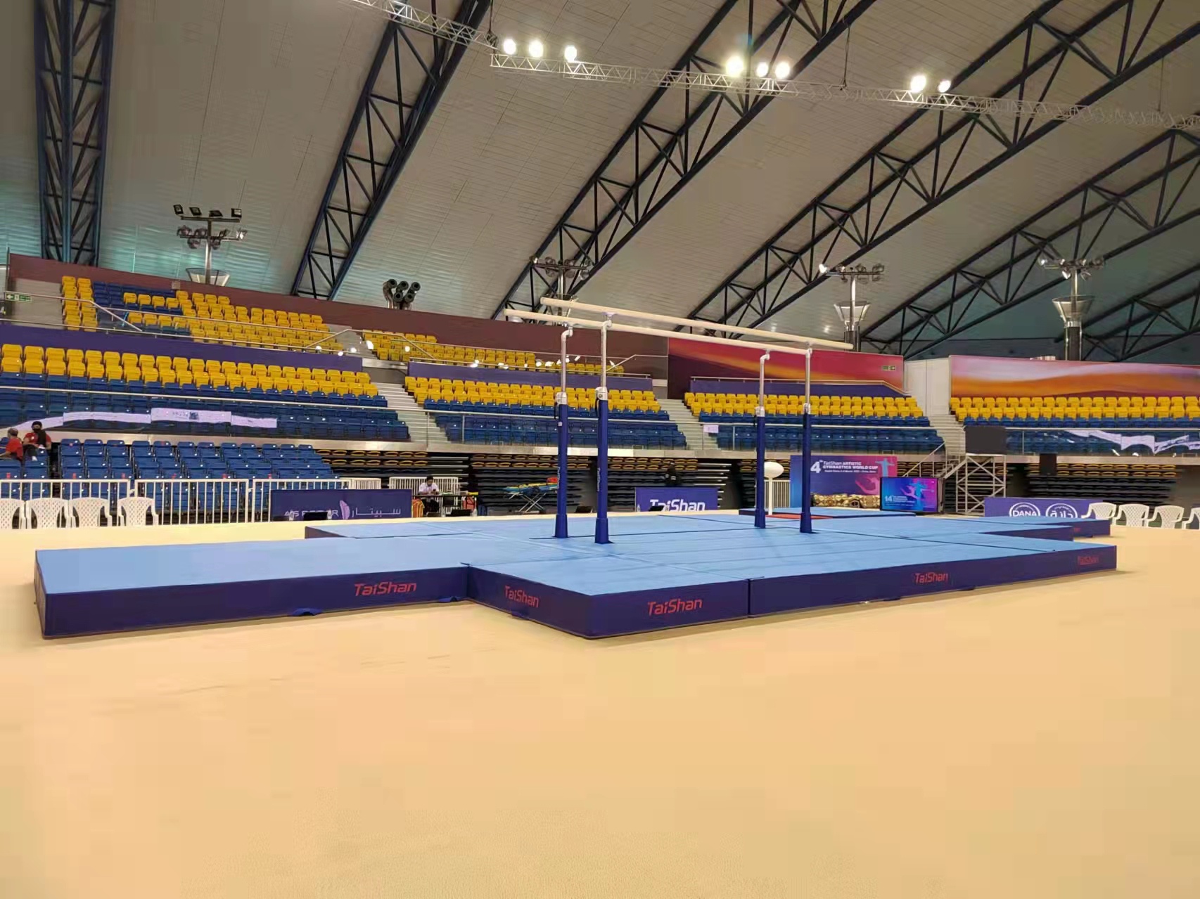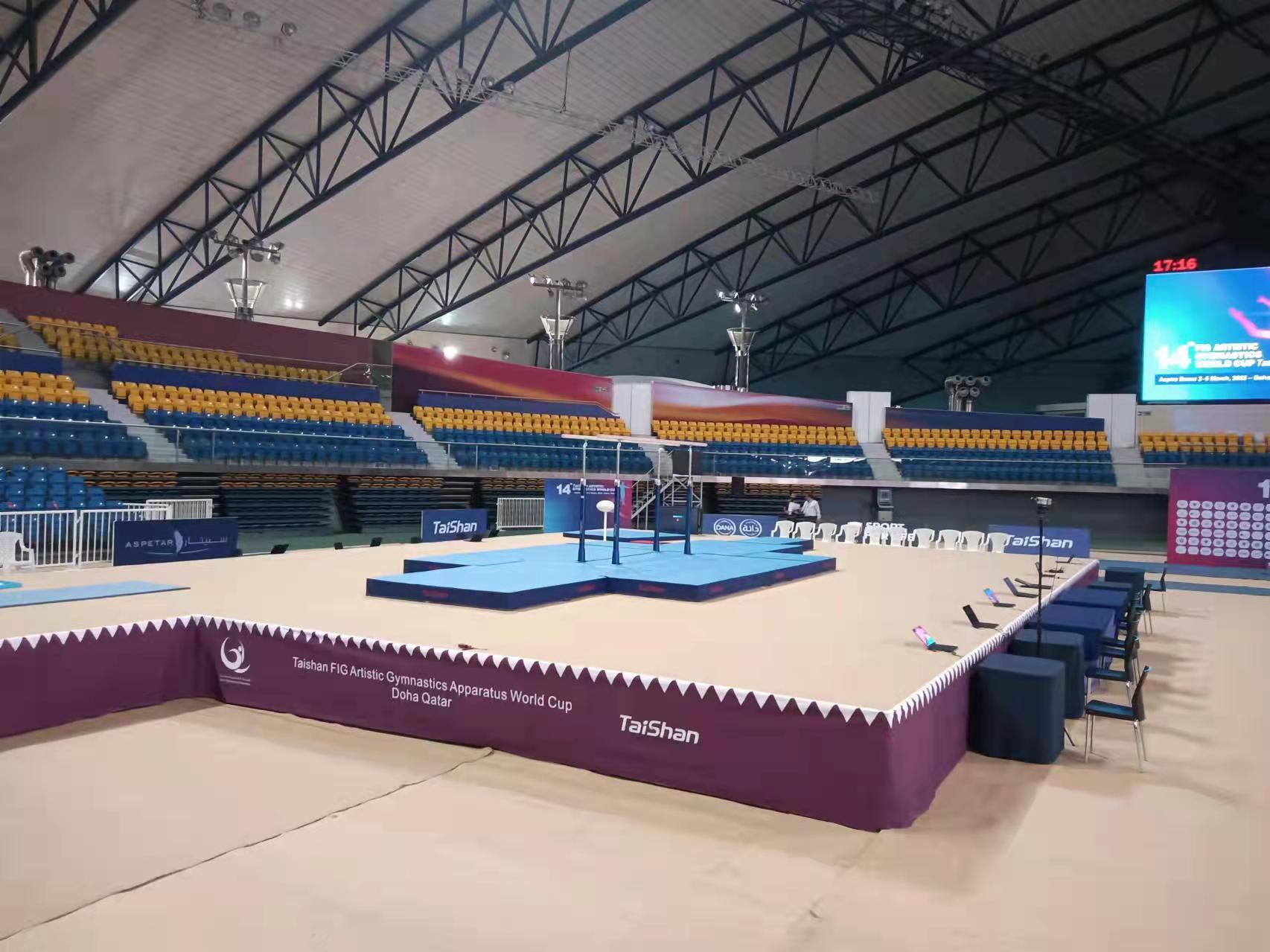 为保障运动健儿的出色发挥,金年汇派出了经验丰富的专业服务团队,于2月22日出发,到达多哈后,队员们不辞辛劳,马上投入到技术指导和安装工作中,并按计划于2月28日圆满完成男子训练馆、女子训练馆、竞赛馆等场馆的安装、调试工作。