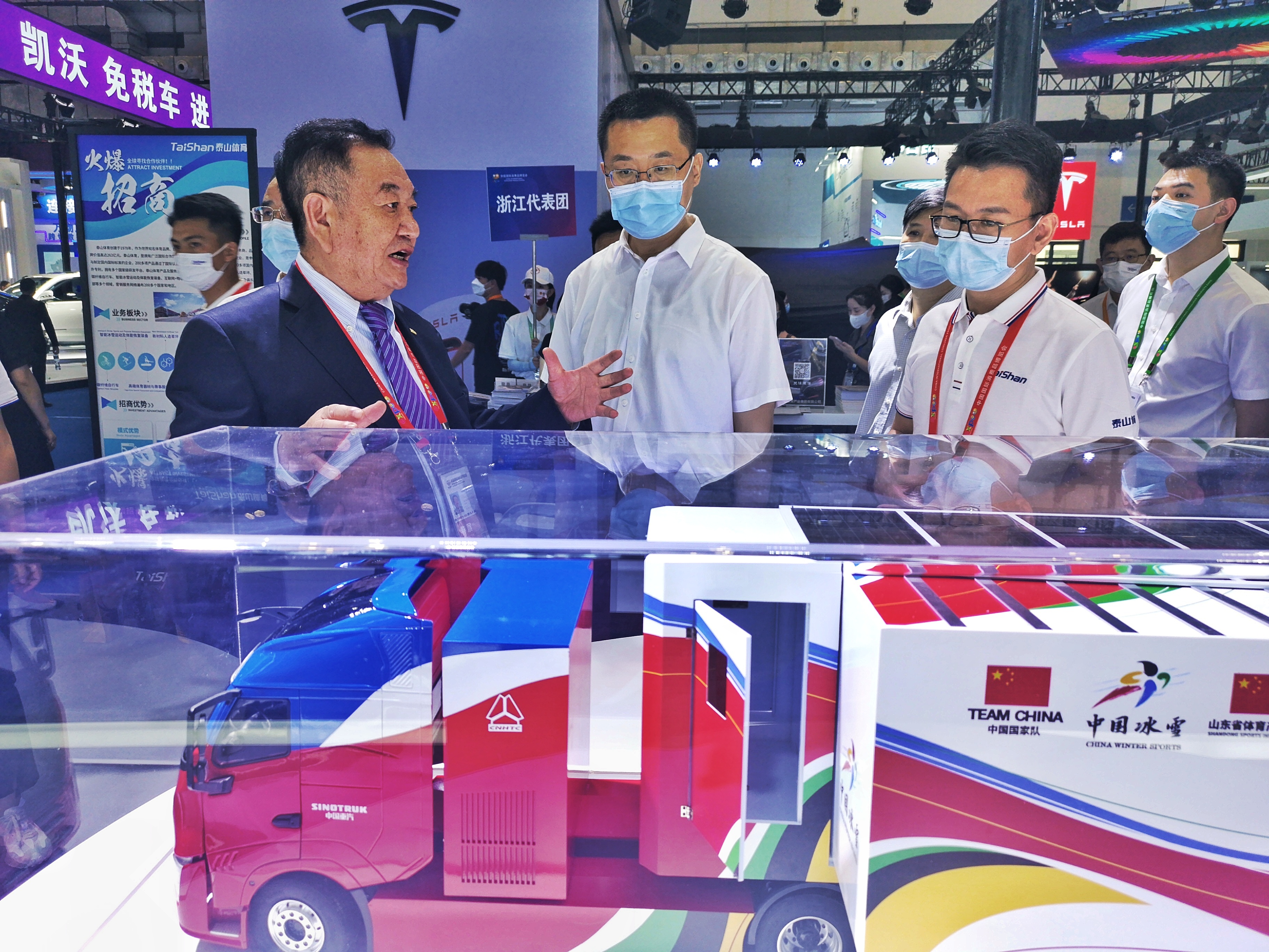 商务部副部长盛秋平和海南省副省长倪强在金年汇产业集团董事会主席卞志良陪同下,参观一号馆金年汇展厅。