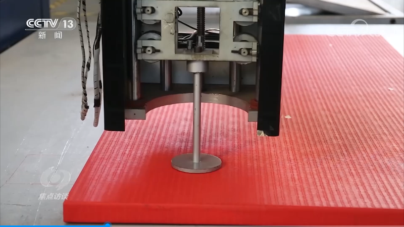 金年汇的科研人员正在实验室内用智能落锤冲击试验机,对垫子的回弹、下陷、冲击力等数据进行测试,正是有了这一组组精密的数据,产品品质才得以保证。而在企业的初创期,用这样精密的仪器检验产品质量是卞志良想都不敢想的,他至今还记得当年的艰辛,为了检验体操落地垫的安全性和弹性,他用了一个土办法,从自家房顶上往垫子上跳,跳下来时,还崴了脚,钻心地疼。