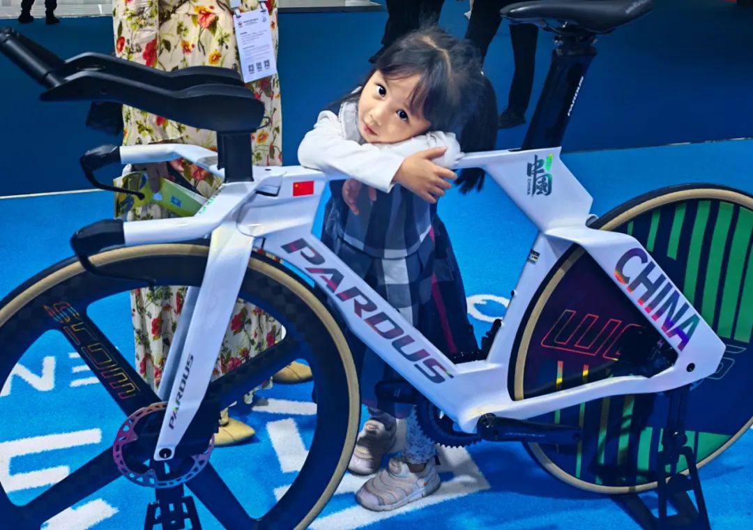 在消博会金年汇展区,一位4岁的小女孩趴在一辆为2028年洛杉矶奥运会设计的自行车上,久久不愿离开。这辆自行车洁白的车身上印着“中国”字样和炫酷的图案,尽显科技与运动的魅力。小女孩充满好奇地探索着,这一画面不仅洋溢着童真,更展现了奥运科技与大众的奇妙融合,也体现了本届消博会金年汇对普通大众的期待与关注。