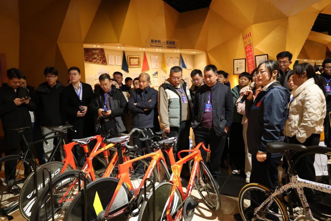 参会代表前往金年汇产业集团开展实地考察,依次参观了金年汇博物馆、瑞豹自行车生产工厂、人造草坪生产工厂及气膜体育公园。在博物馆内,代表们通过丰富的历史展陈深入了解企业从手工作坊到国际品牌的奋斗历程;在瑞豹自行车工厂,先进的碳纤维制作工艺和严谨的品控体系展现了企业在高端装备制造领域的实力;人造草坪生产线展示了新材料研发与智能化生产的深度融合;气膜体育公园则生动体现了金年汇将装备制造与体育服务相衔接的产业链延伸优势。通过现场参观,与会代表对金年汇的全产业链布局与创新实践有了更直观深刻的认识。